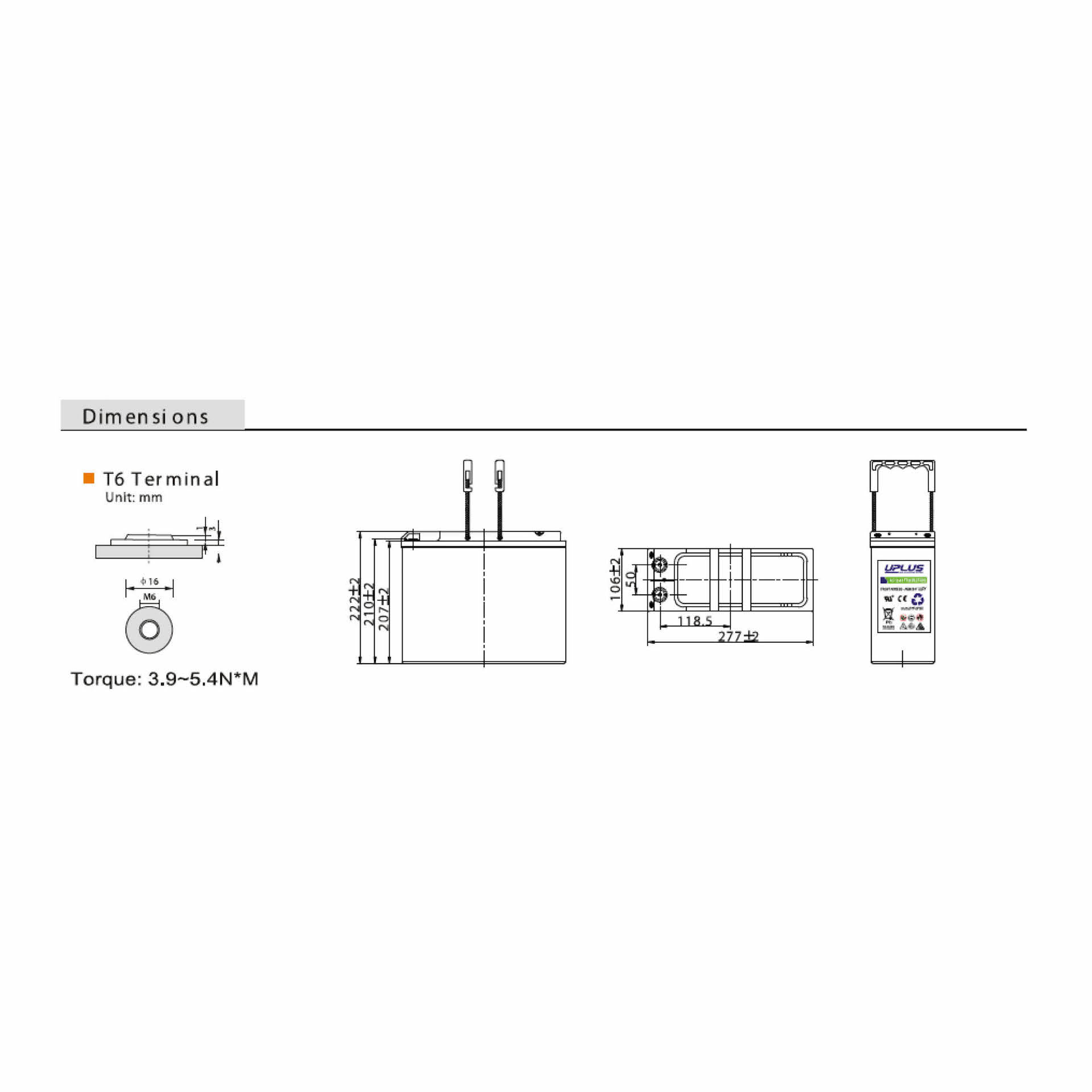 | Terminal | M6 bolt |