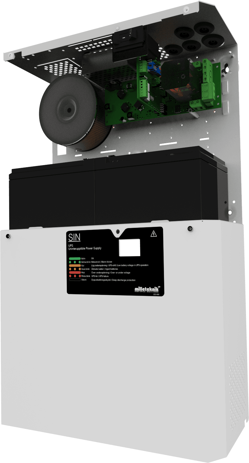 *Controlled charging means that the batteries are charged at a lower charge voltage to reduce battery wear. This means that batteries are charged full (100%) more slowly. A 12 V, 7.2 battery will be fully charged at most with 30% of 1.2 Ah = 2.16 Ah. If you need a controlled upload time, this is available in our EN54 series.