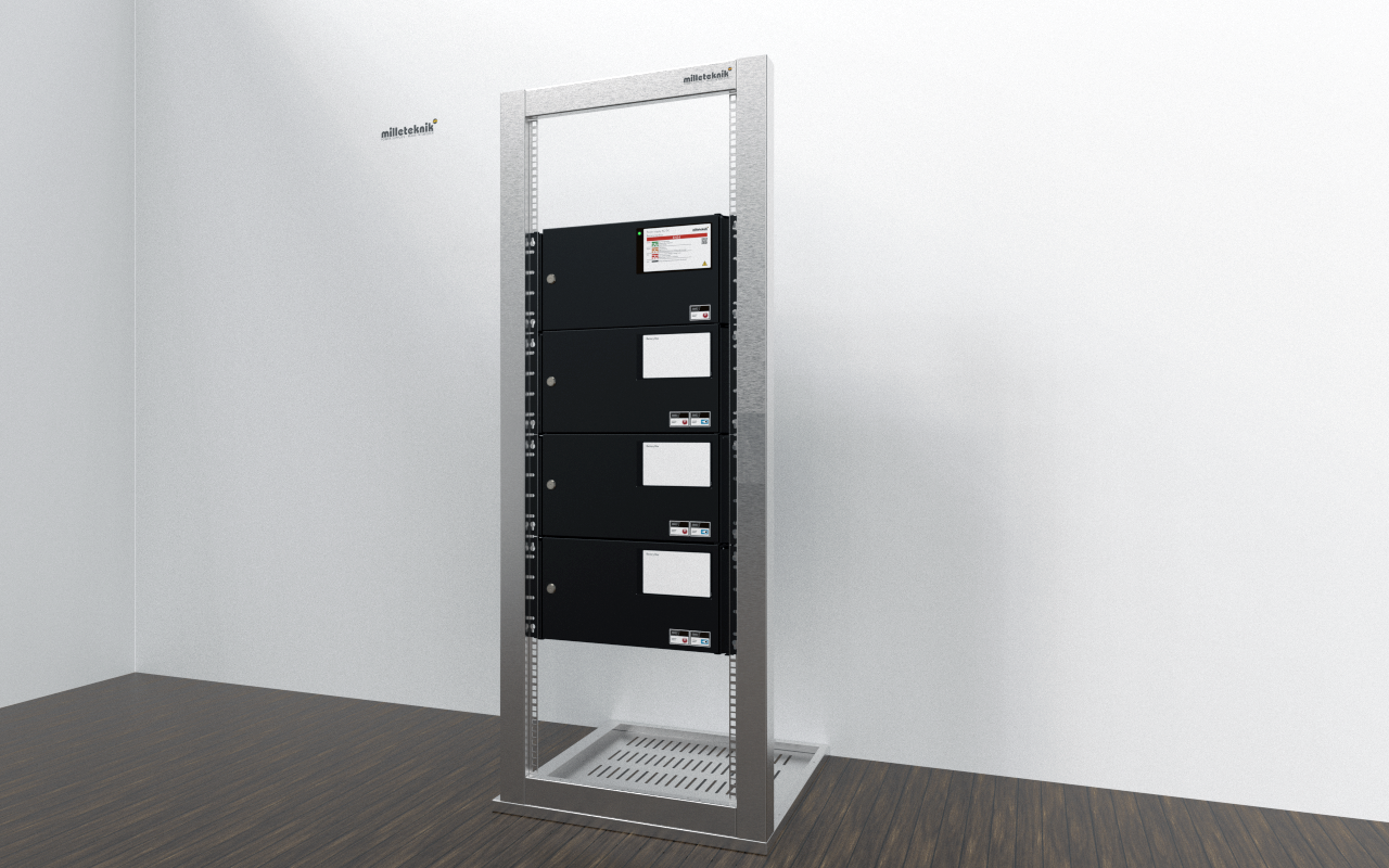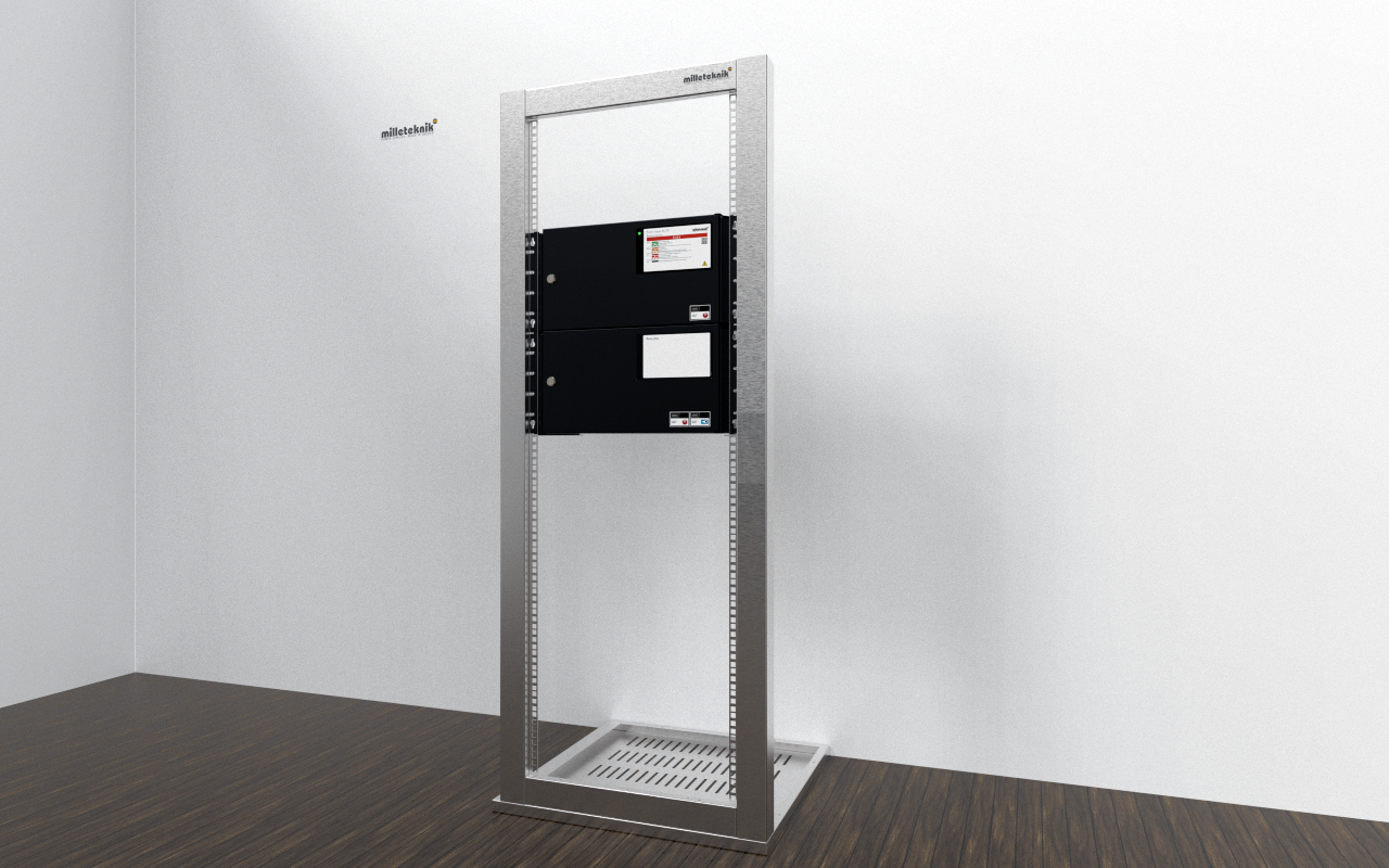 Montering: EN54 kan monteras på vägg eller i 19” rack, vändbara konsoler ingår.