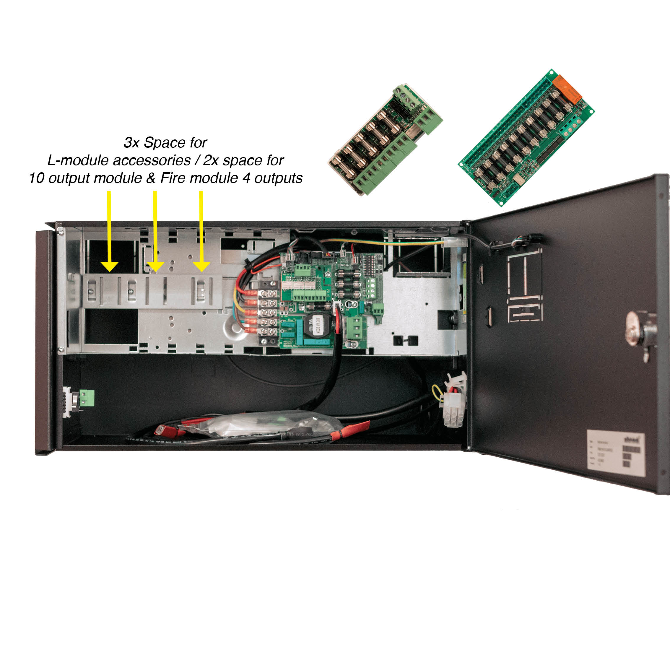 Tre L-modul tillval, Två 10 output module ellertvå Fire module 4 outputs