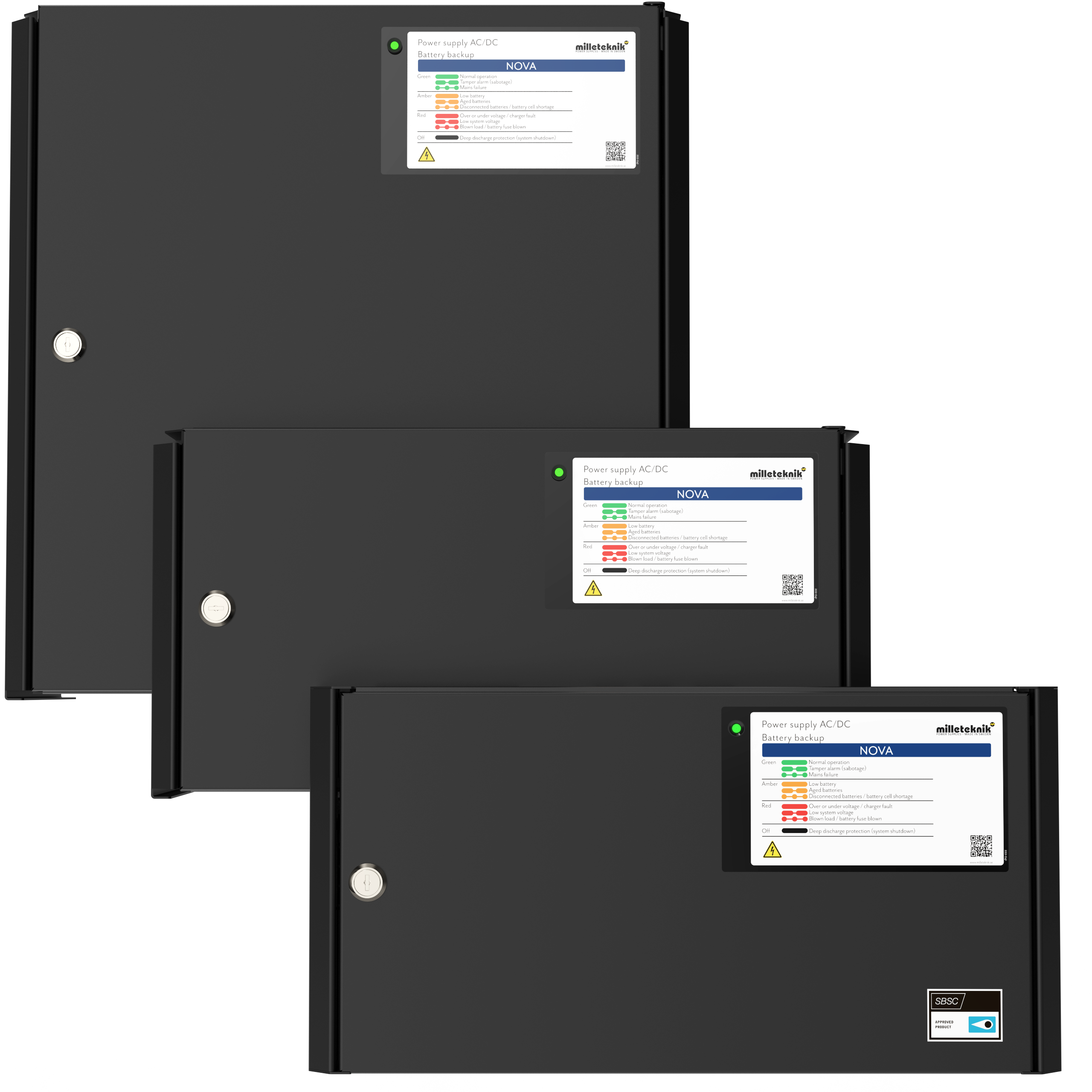 Batteribackuper i NOVA-serien har hög flexibilitet, avancerade larmfunktioner, långa reservdrifttider, kan hantera höga laster och har kommunikation.