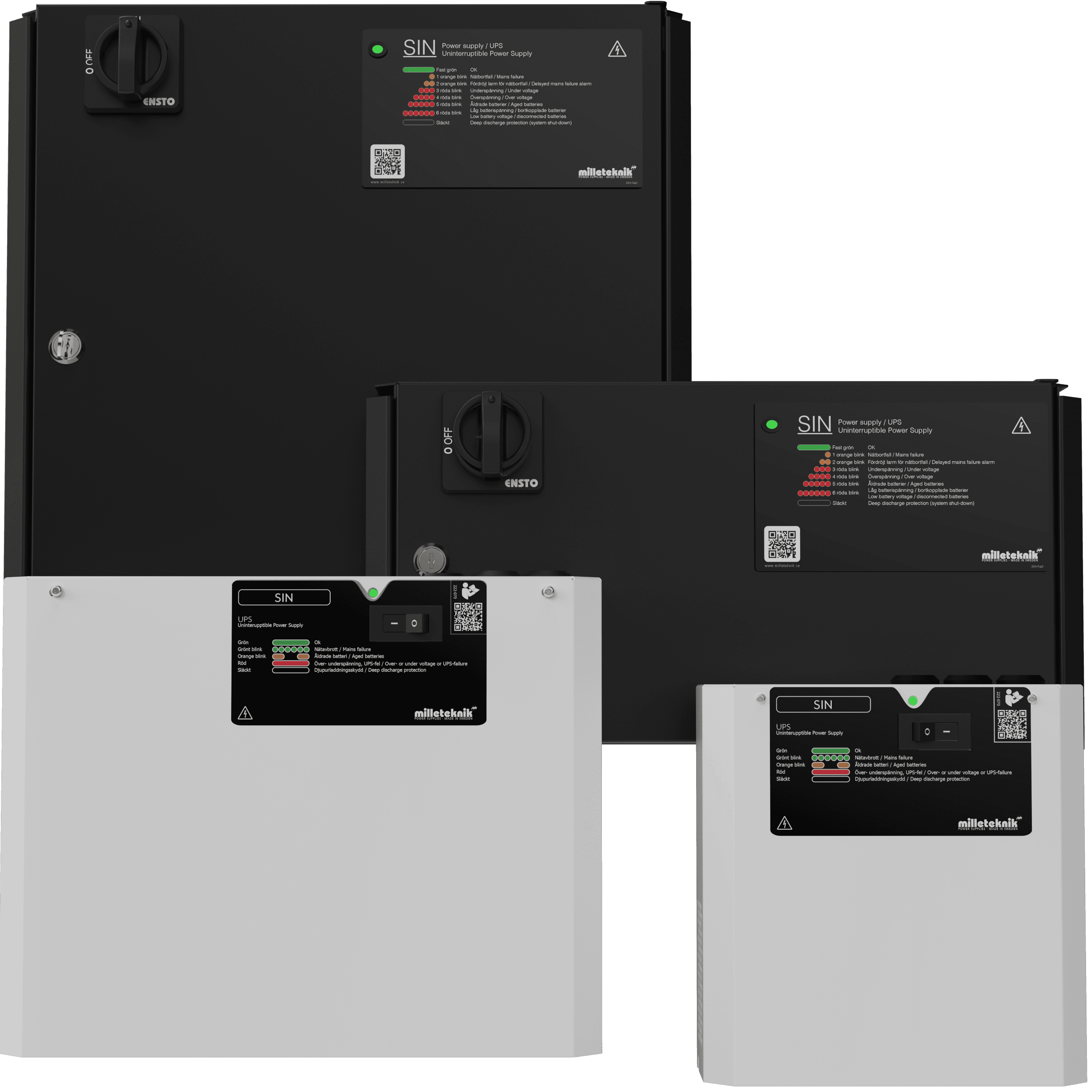 *Kontrollerad laddning innebär att batterierna som laddas med en lägre laddspänning för att minska slitage på batteri. Detta betyder att batterier laddas fulla (till 100%) långsammare. Ett 12 V, 7,2 batteri kommer att laddas fullt som mest med 30% av 1,2 Ah = 2,16 Ah. Behöver man ha kontrollerad uppladdningstid finns detta tillgängligt i vårt EN54-serie.